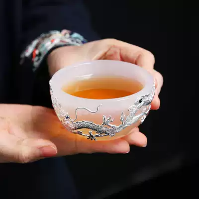 Silver-encrusted glass teacup Kung Fu tea cup Tea cup Master cup thickened glass single cup Tea set Jade porcelain teacup Single