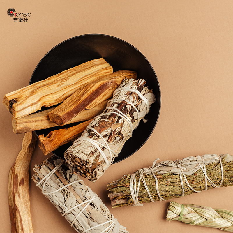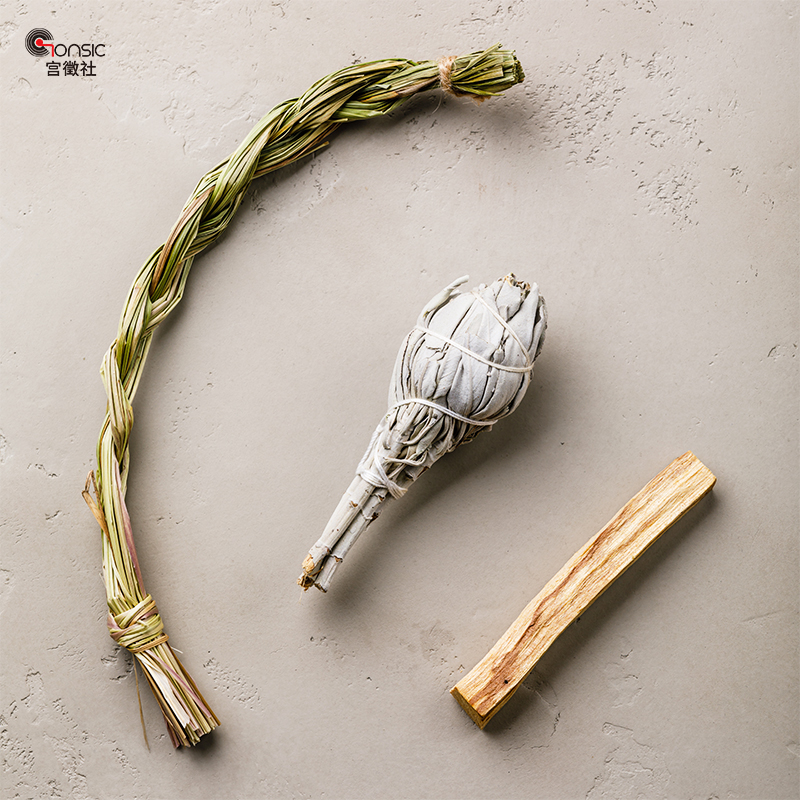 White Sage about 23cm large shell Holy Wood about 30g sweet grass about 40cm Cedar about 20cm