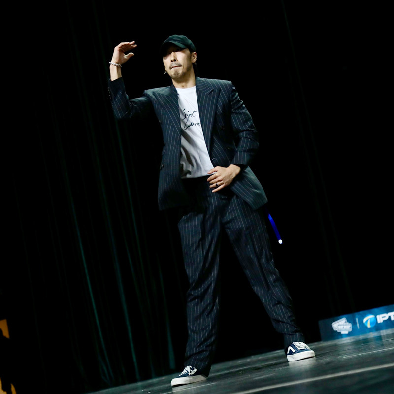 Hip-hop poppin mechanical dance loose striped suit suit star with the same lock dance trousers 072-2