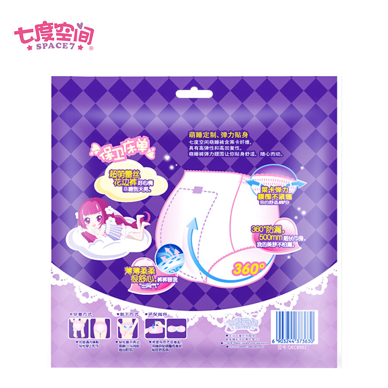 Seven-degree space sanitary cotton female whole box sweet sleeping pants 6 slices of night with peace of mind Sleeping Pants Aunt Wipes girl students use