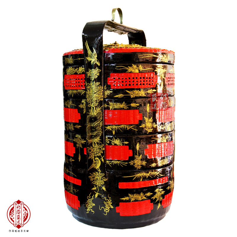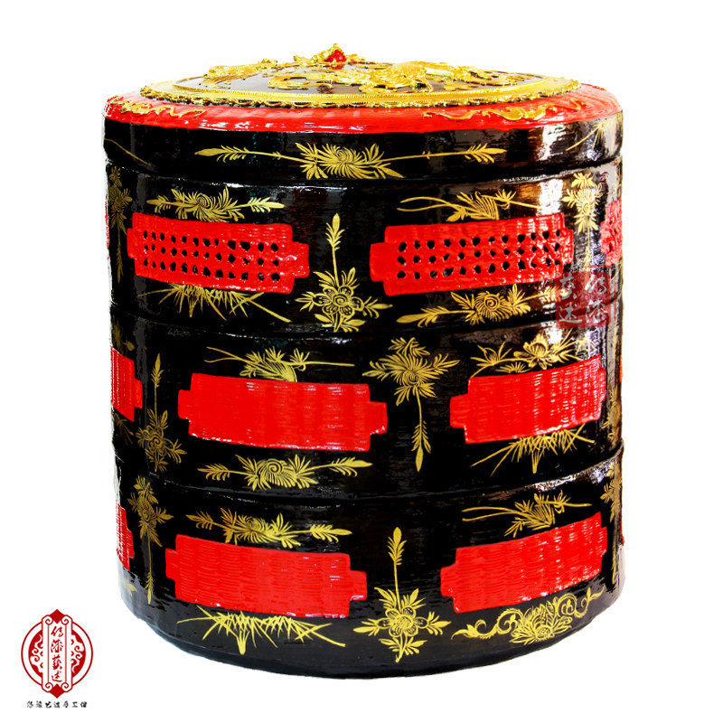 Lacquer art description Yongchun lacquer basket Minnan pandan dragon and phoenix handmade bamboo weaving large lacquer wedding wedding burning incense worship God basket