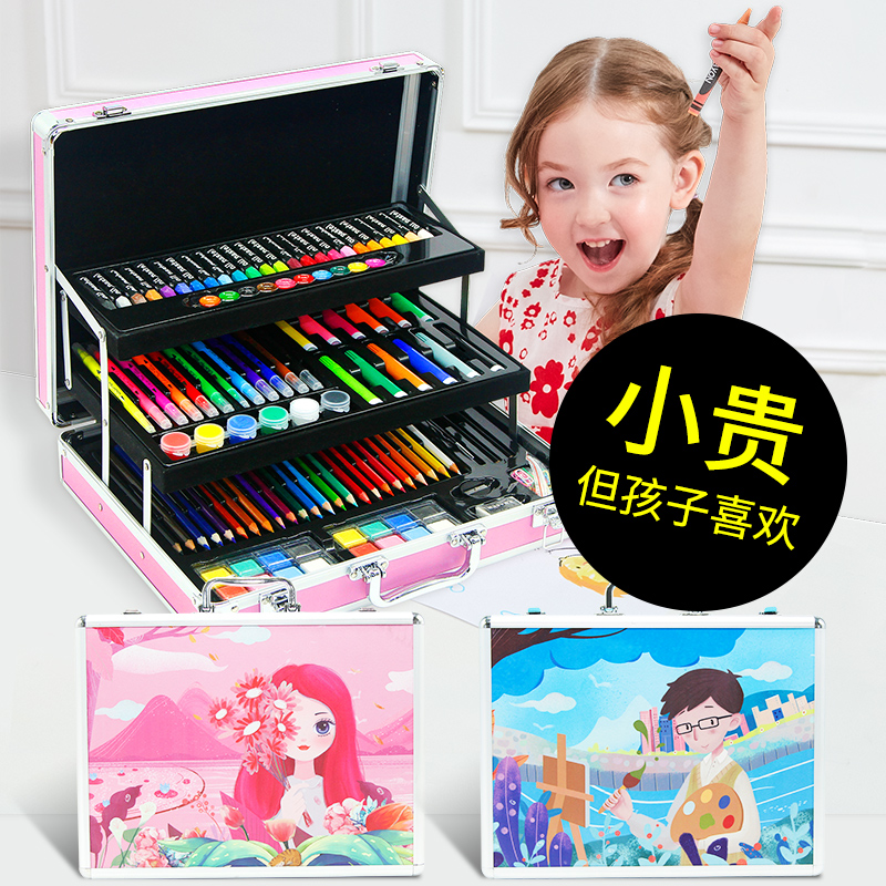 Colorful aluminum box powder (good friend) 90pcs painting set (blue) 36 color thick rod watercolor pen (barrel) Colorful aluminum box Blue (robot) Colorful aluminum box powder (Ballet girl) Easel