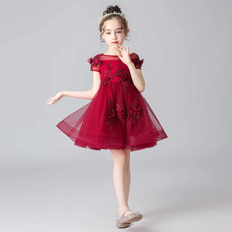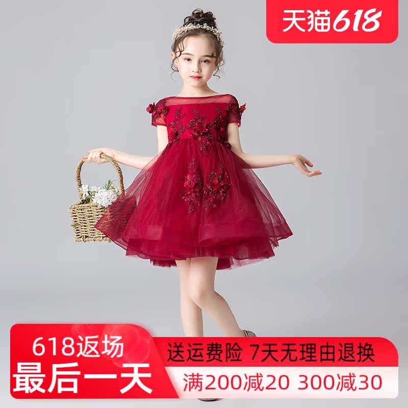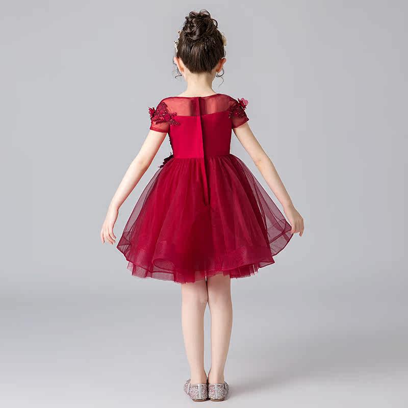 Children's Gown Princess Dress Girl Fluffy Yarn Flowers Children's Piano Plays Out Little Girl Host Evening Gown