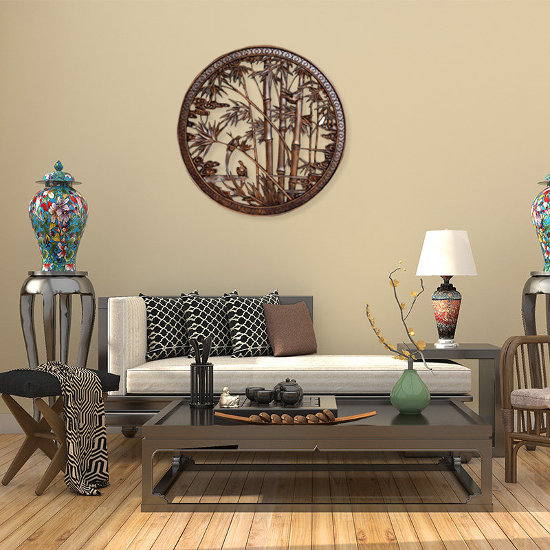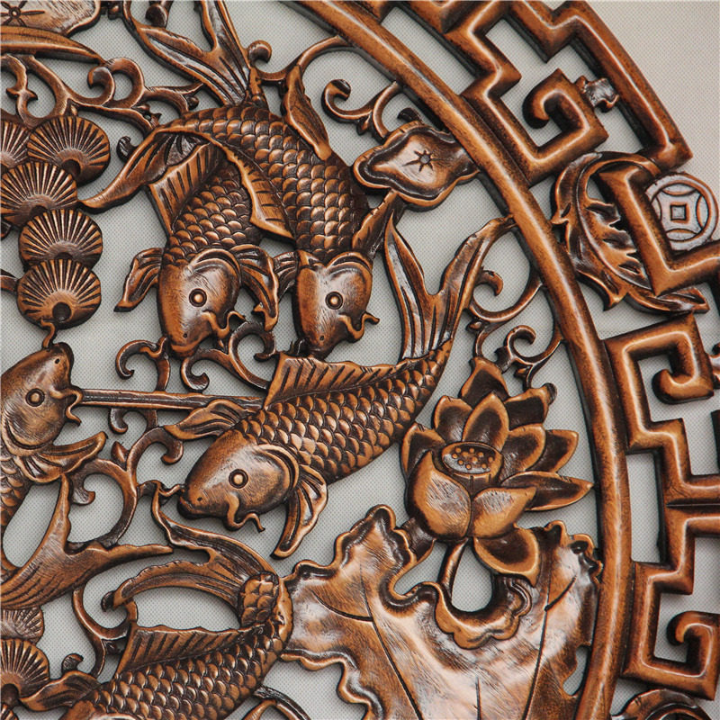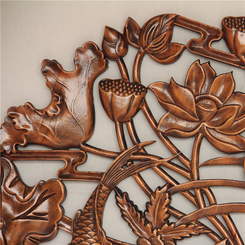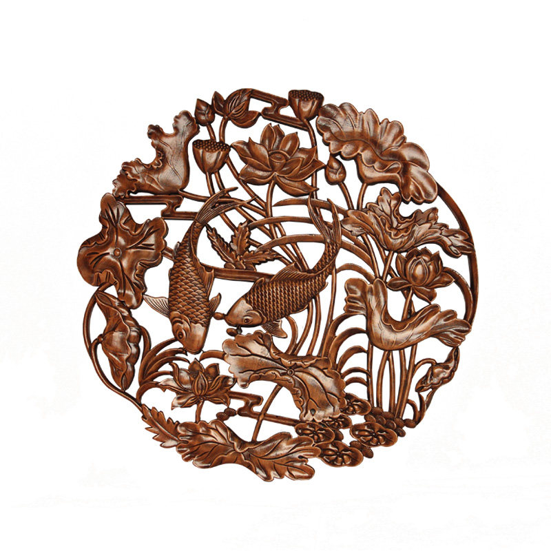 New Chinese solid wood carved pendant fragrant camphor wood round wall decoration Chinese style living room decoration engraving craft gift hem decoration background decoration