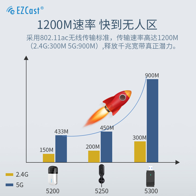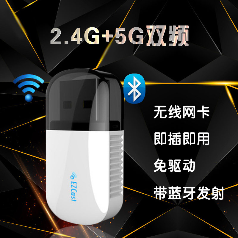 EZCast Computer Bluetooth Adapter 5.0 Drive Gigabit Mini Wireless Card 5G Dual Frequency Anti-Interference Multifunction USB Transmitter Receiver Notebook Desktop Computer Portable Wifi