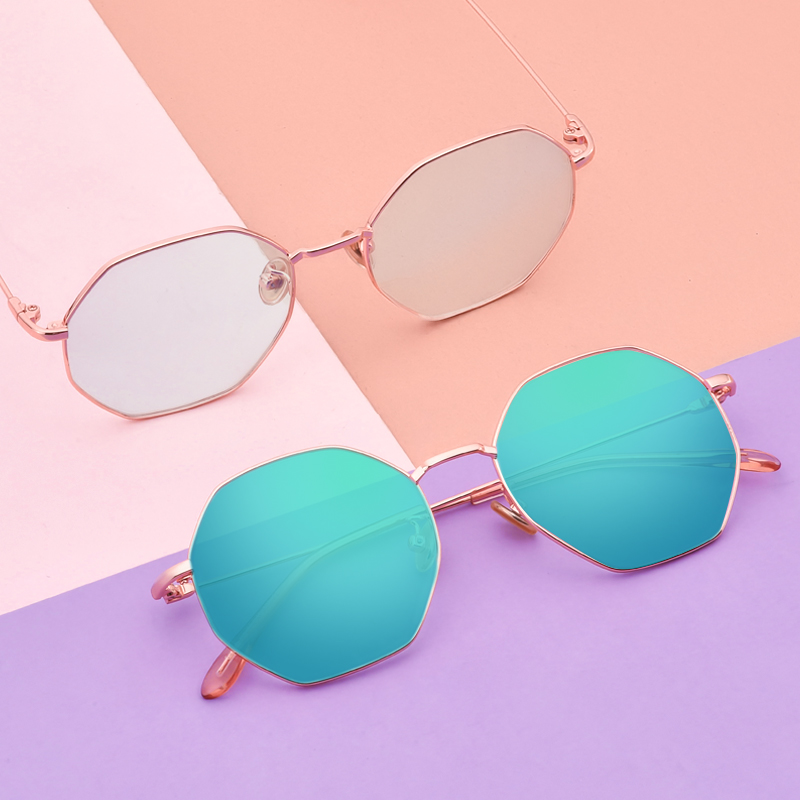 Dazzling colour discoloration glasses Han version Tide Sunglasses Female Myopia Sunglasses Anti UV with Degrees Vegan Powder boxes