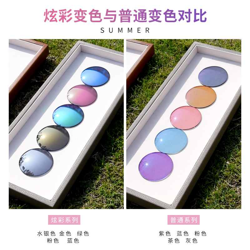 Flat light turns plain blue (frame color remarks) flat light turn normal grey (frame color remarks) General discoloration 1 56 lenses (contact customer service) flat light turn ordinary pink (frames)