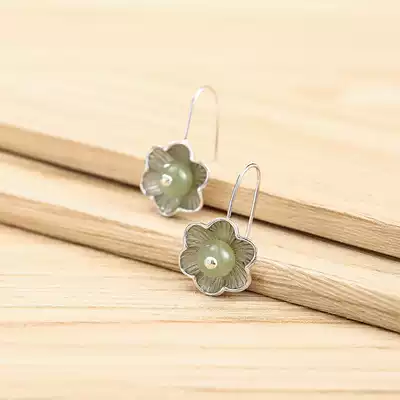 New sterling silver earrings natural Hetian Jade Crystal handmade silver women fashion earrings jade earrings jewelry