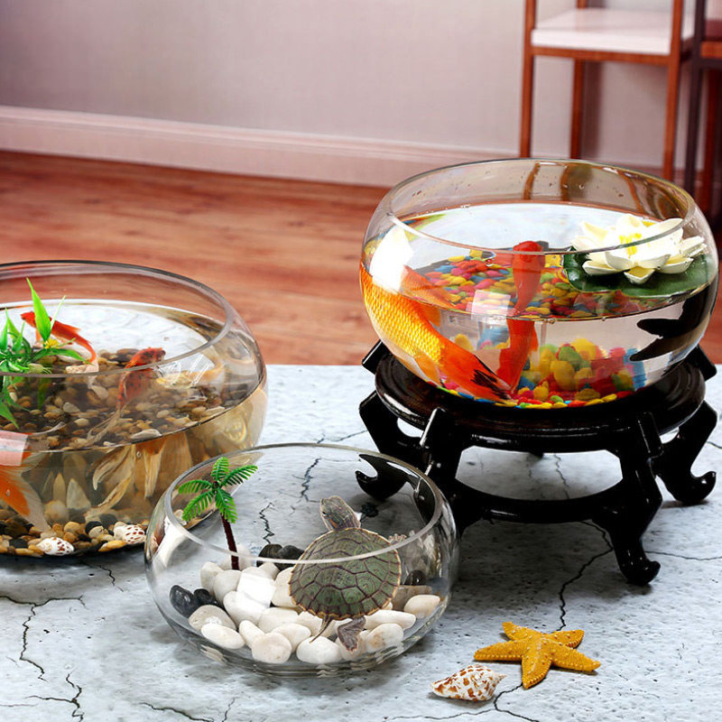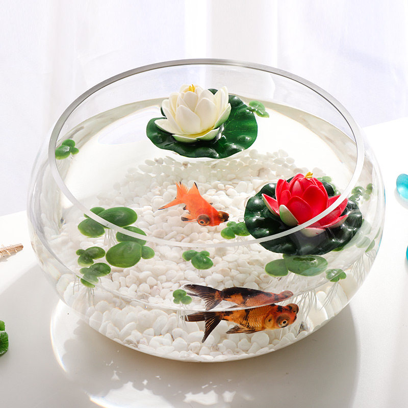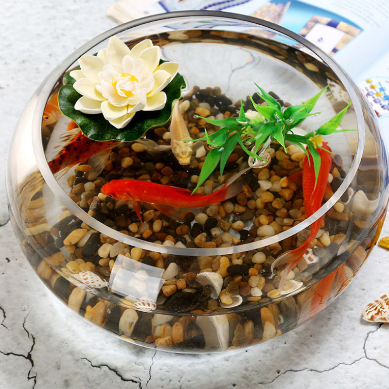 Glass round goldfish tank Small desk Living room household transparent turtle tank Aquarium landscape