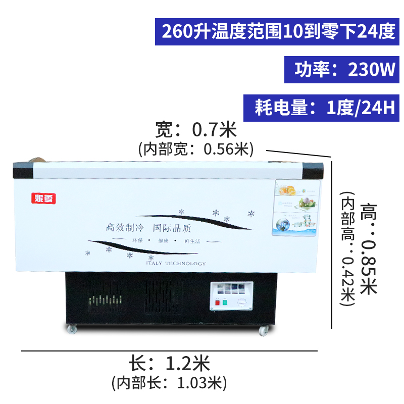 1 2 Mi Island Cabinet Commercial Supermarket Display Case horizontal freezer Refrigerator Refrigerated freezer glass door refreshing cabinet