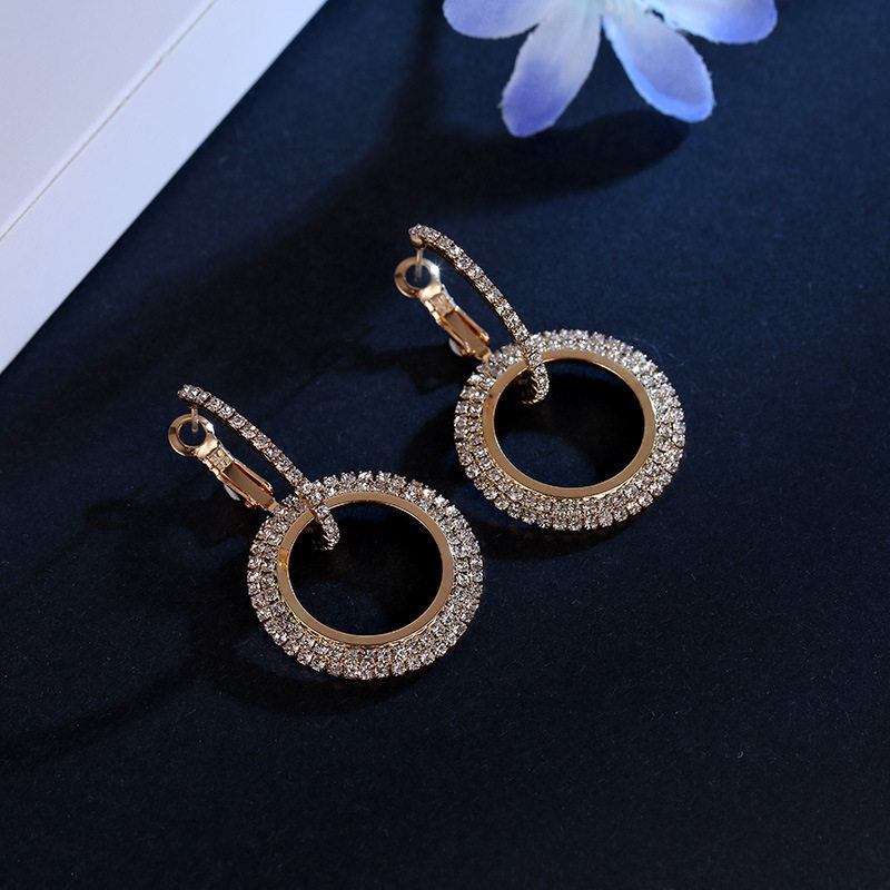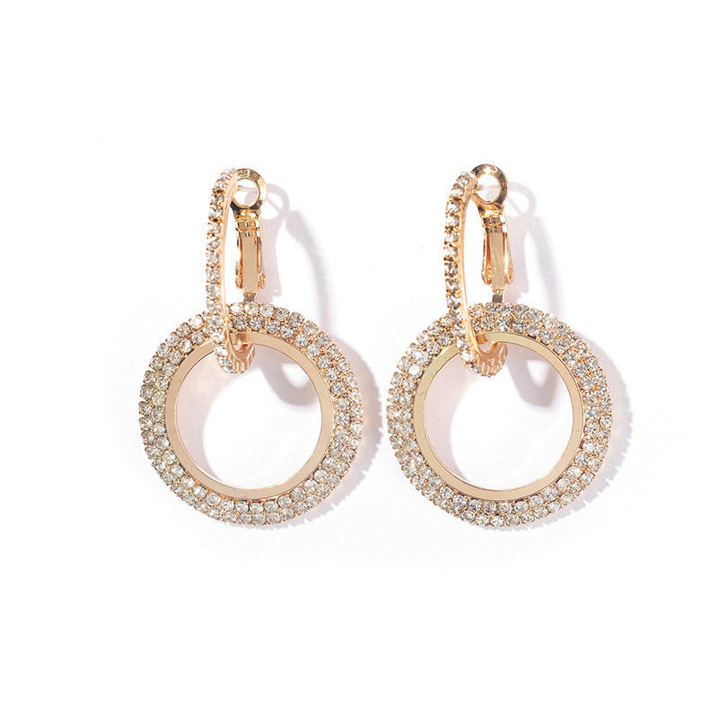 Korean version temperament geometric earrings circle full of diamonds goddess earrings interlocking creative small jewelry factory direct sales