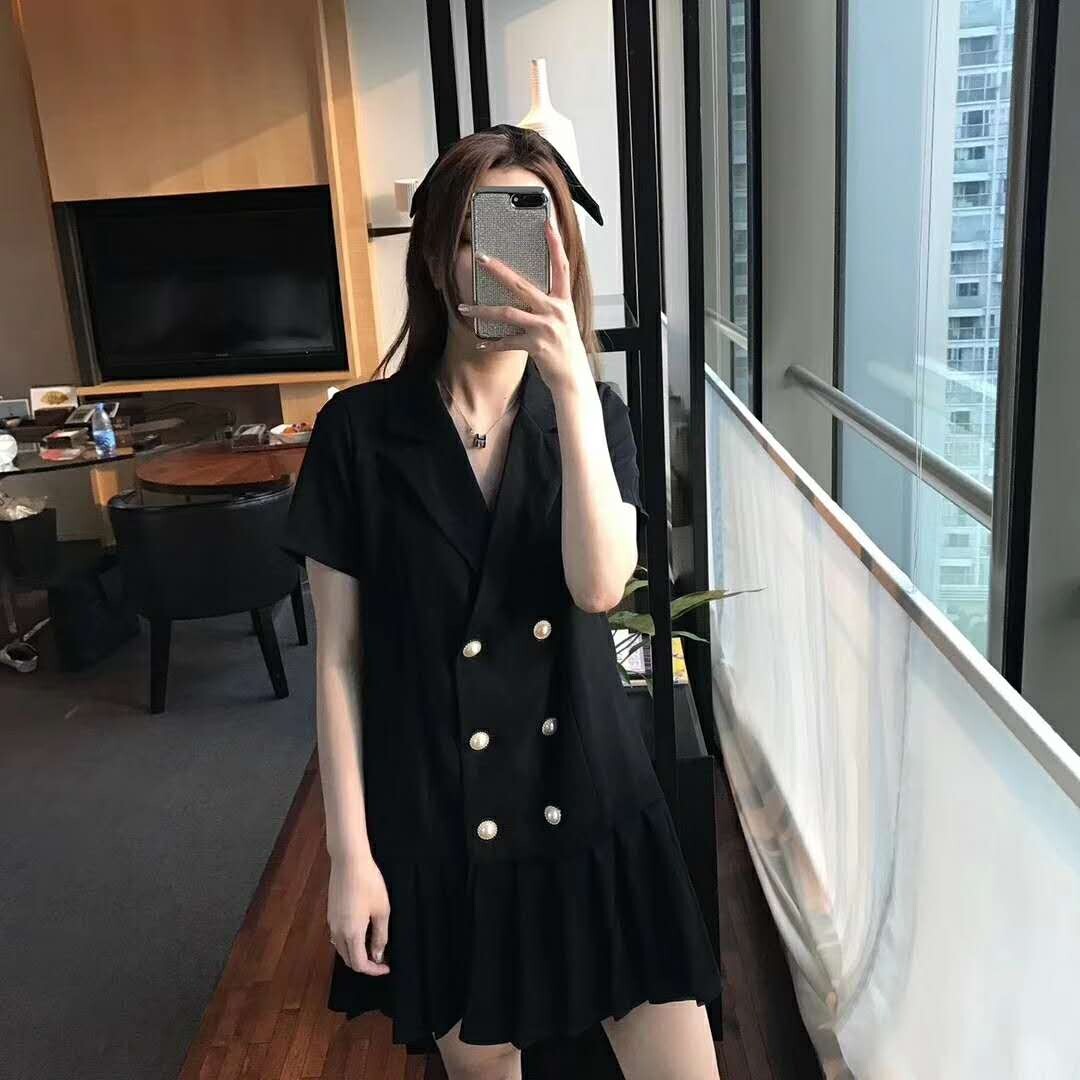 Super fat plus size women's summer new fat sister cover belly Tibetan meat suit collar short skirt age-reducing Western style skirt
