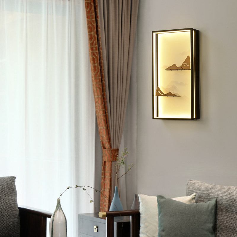 New Chinese Wall Lamp Bedroom Book Room Living Room Led Landscape Pattern Zen Chinese Wind Minimalist Modern Creative Luminaire