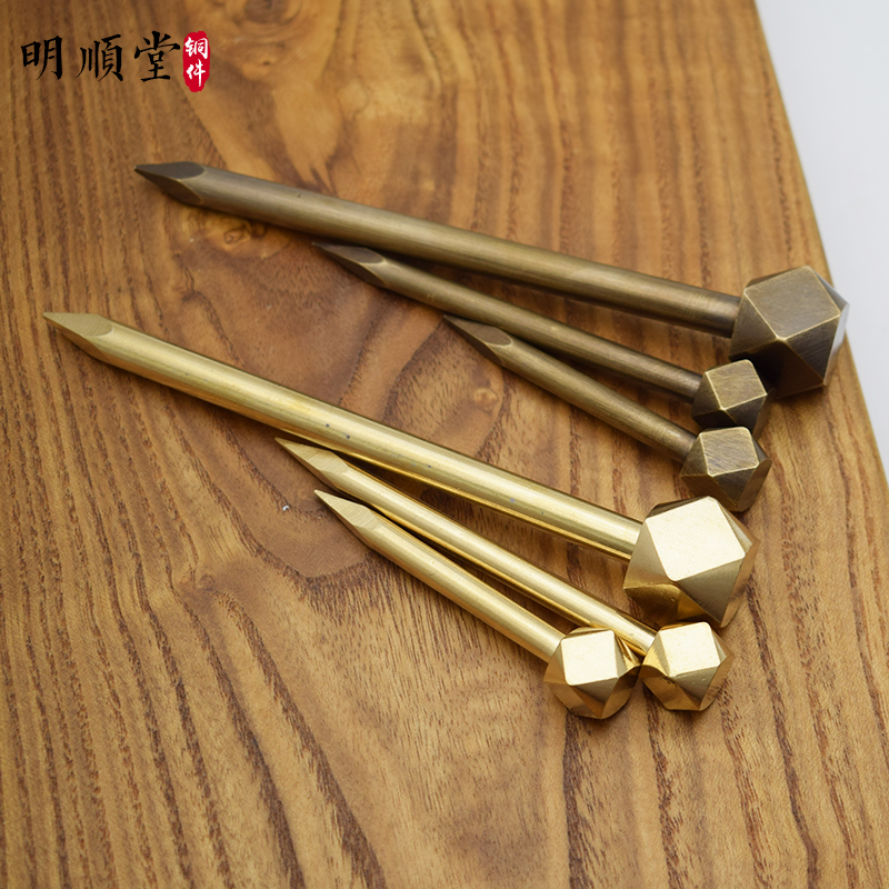 Modern simple pure copper hook All copper hanging nails calligraphy and painting brand flat painting holder needle drum-shaped copper nails extended solid copper small black clip