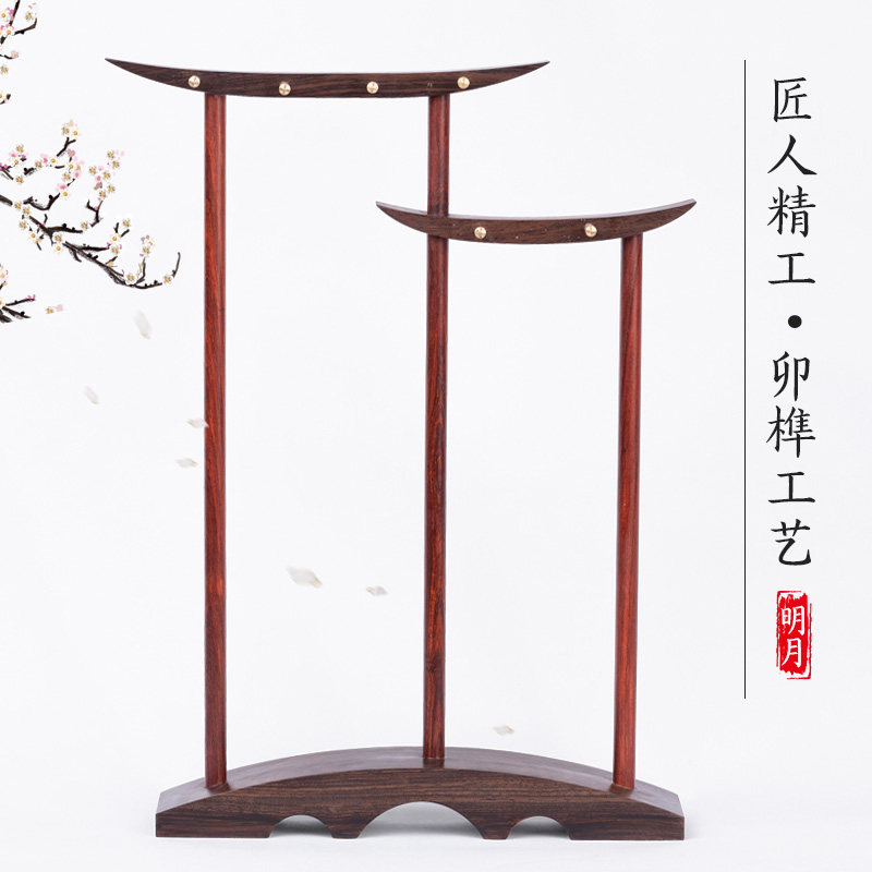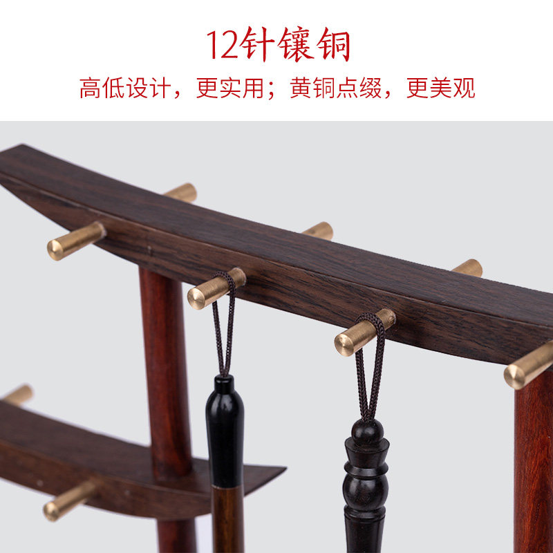 (Jing Huitang) solid wood pen holder rosewood bright moon brush hanging 12-pin copper inlaid study four treasures pen wall hanging Chinese painting calligraphy study desk furnishings creative gifts