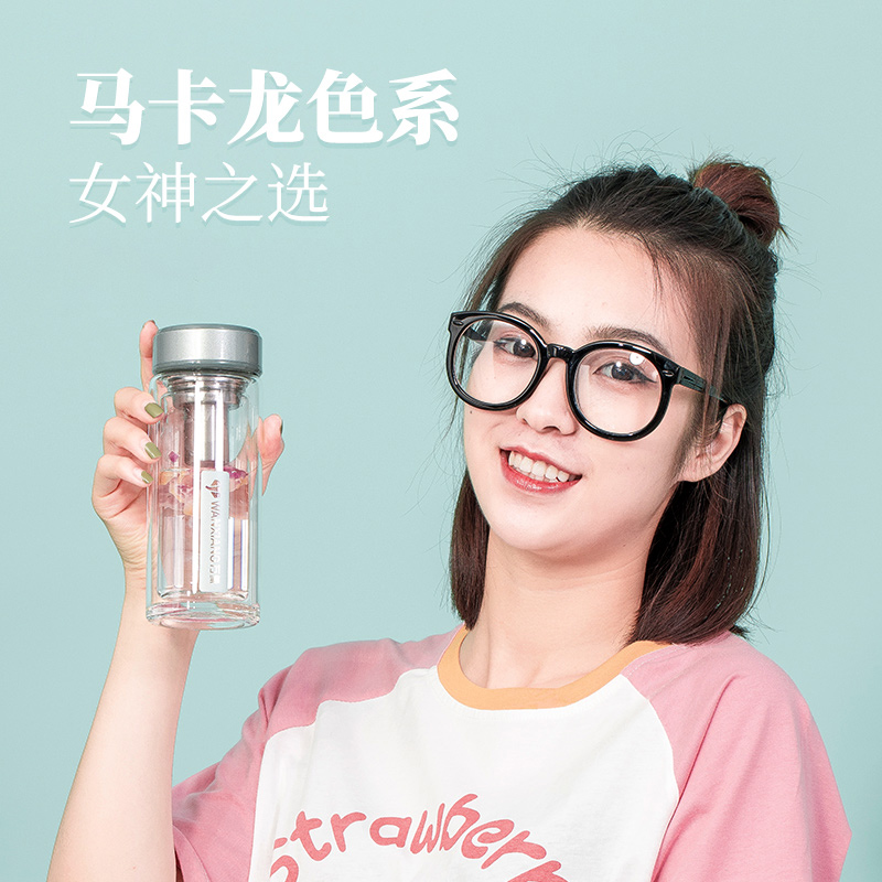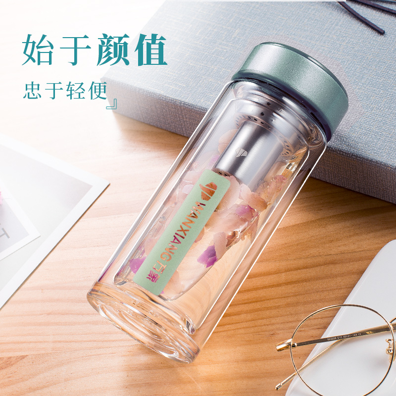 Vientiane glass women's summer high-value water cup ladies cute portable mini tea cup double-layer glass cup