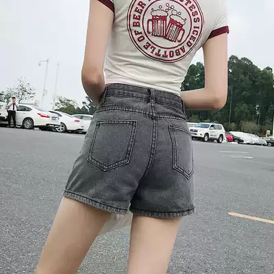 Gray denim shorts women's high waist hyuna summer 2021 new Korean loose thin section wide leg a-line hot pants