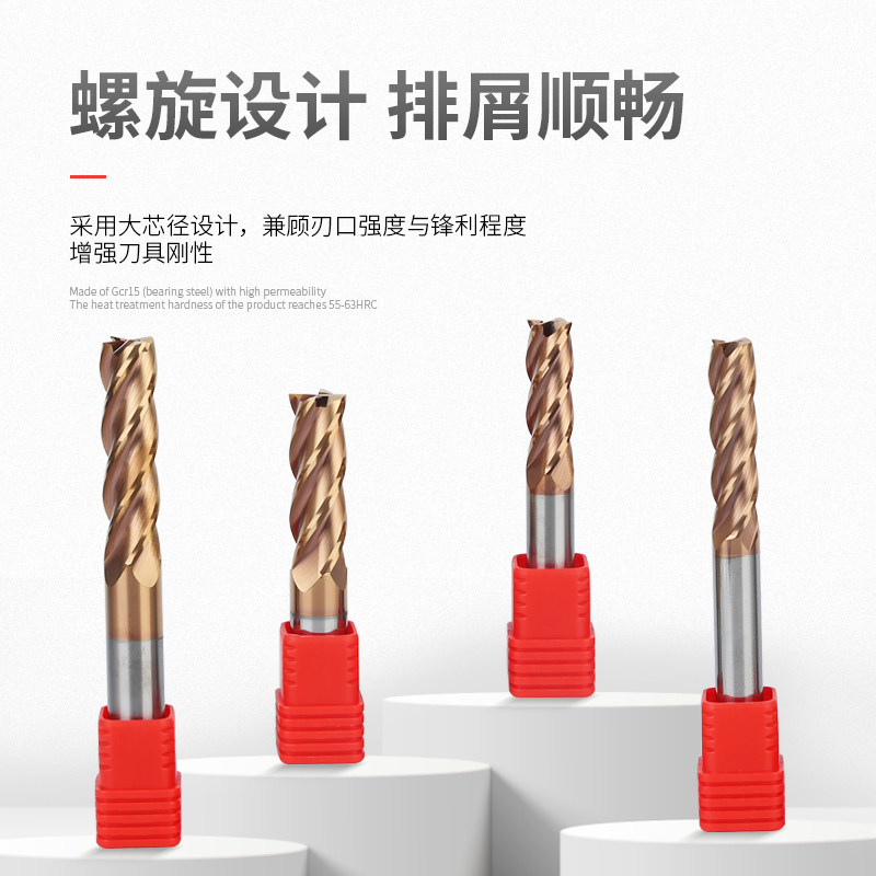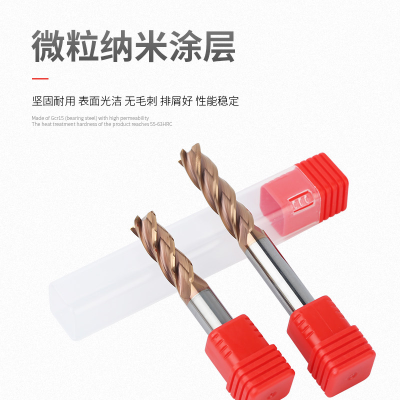 Imported 55 degree tungsten steel milling cutter straight handle coating carbide lengthening 4 edge square milling cutter CNC high hardness