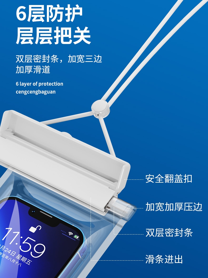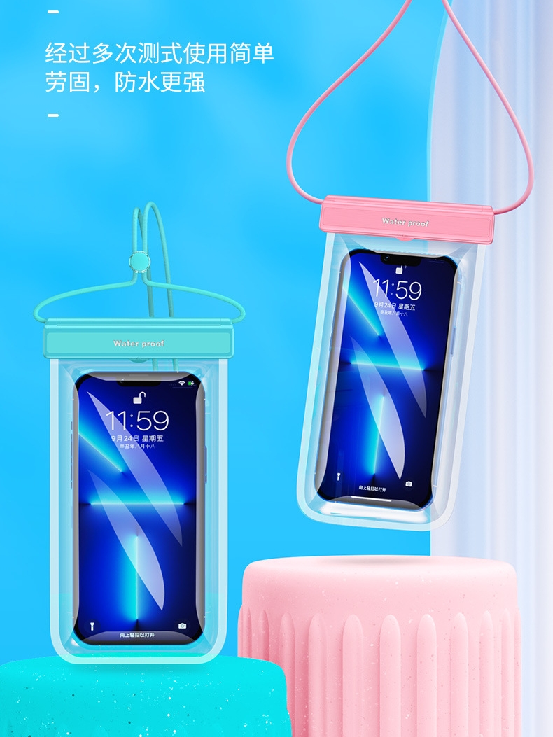 Fashion airbag universal mobile phone waterproof bag swimming drifting transparent charging treasure waterproof case can float four-layer seal
