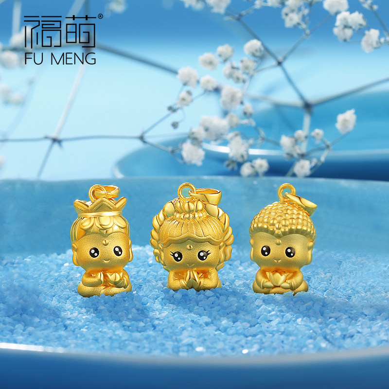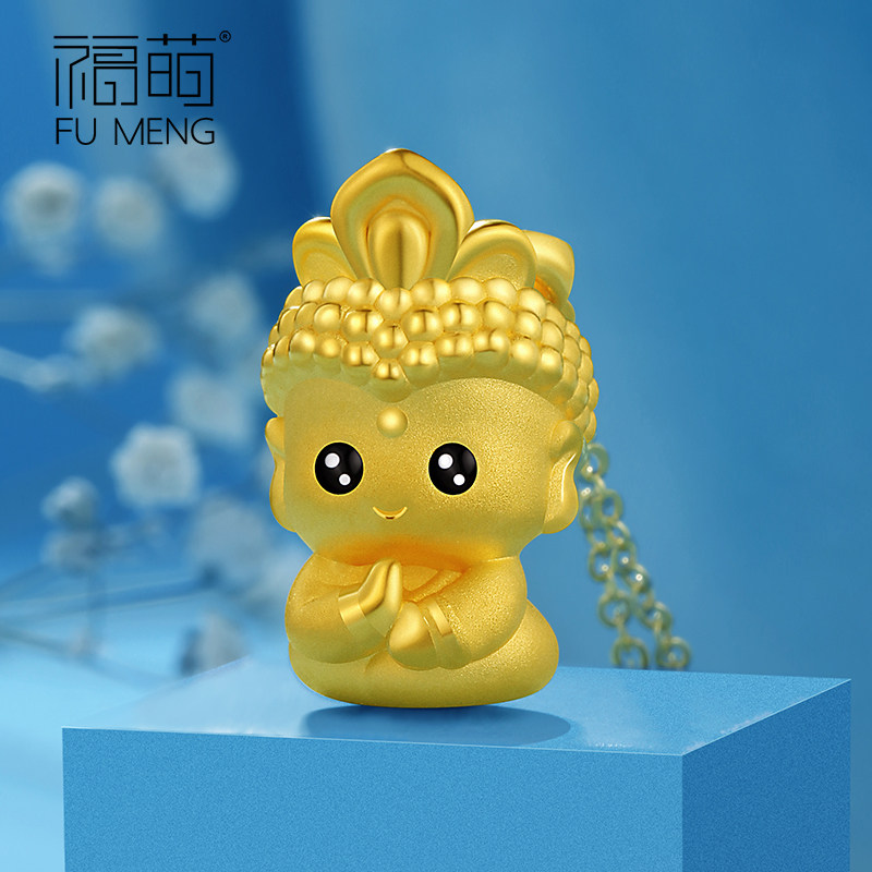 Fu Meng Gold Buddha Pendant Woman Zodiac Zodiac Zodiac Life Buddha's Head Little Tiger Year Zodiac Guanyin 999 Foot Gold Necklace