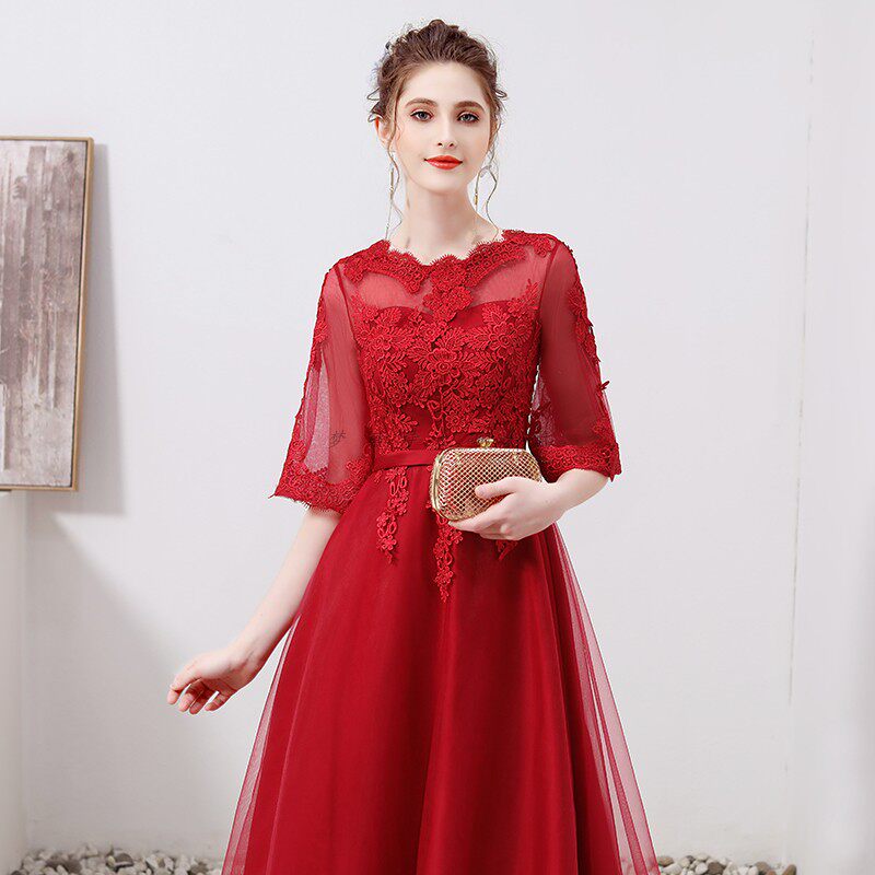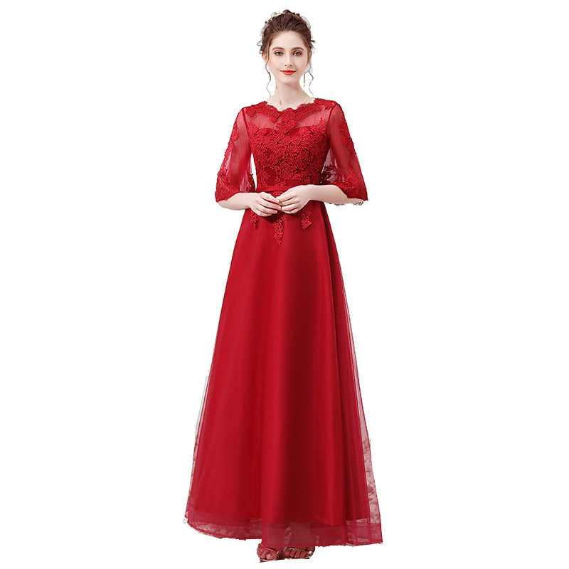 Gattening extra-large size wedding dress 200 catty weight mm Fat person evening dress Pregnant Woman Banquet THIN RED TOAST WITH RED TOAST