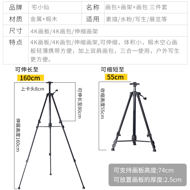 Easel drawing board painting bag Three-piece set Aluminum alloy art examination sketch set for beginners students with out-of-home sketching students full set of 4k open drawing board Easel set Art multi-function folding tool painting bag