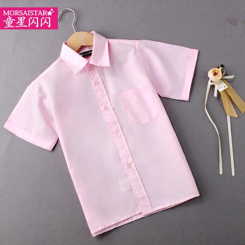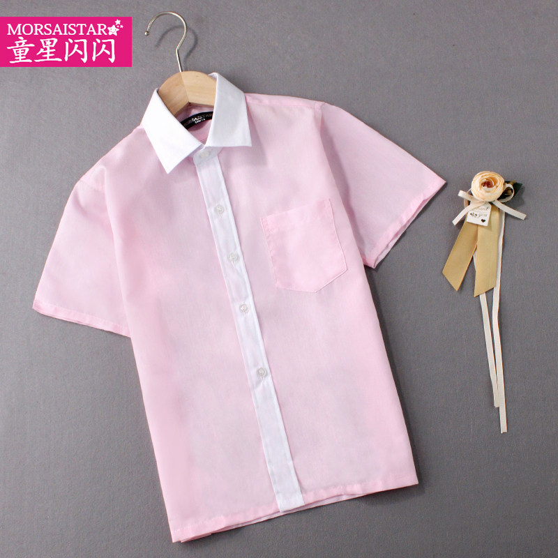 Boys short-sleeved shirt pink shirt summer kindergarten show little host shirt top primary school clothing