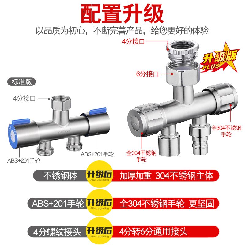 Washing machine tap diverter stainless steel one-in-two out three-way water splitting angle valve 10%-two universal adapter