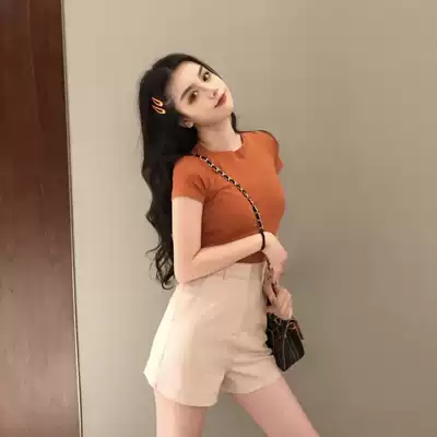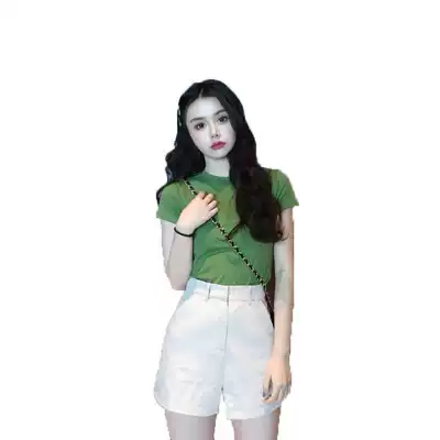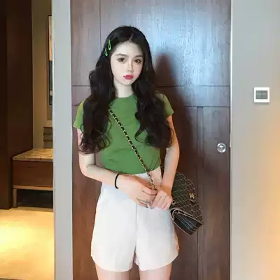 European station 2021 summer new fashion shorts set female Korean version of the thin short-sleeved top temperament two-piece set