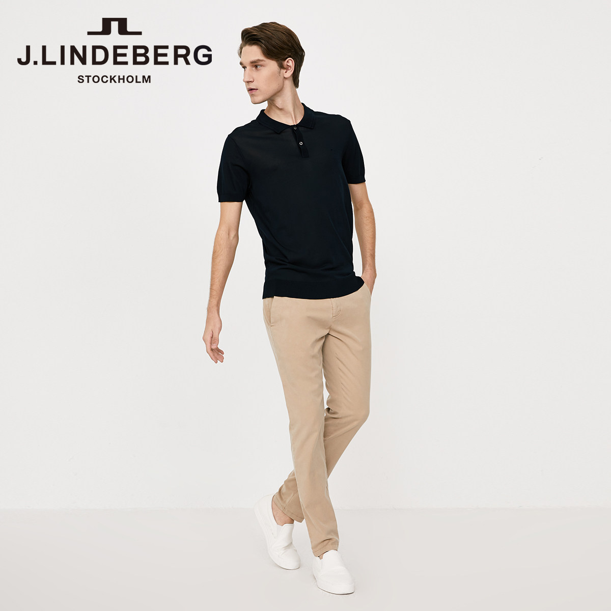 JLINDEBERG Gold Lindberg Lightweight Business Embroidered Knit Poloshirt Men's Short Sleeve Lapel T-Shirt