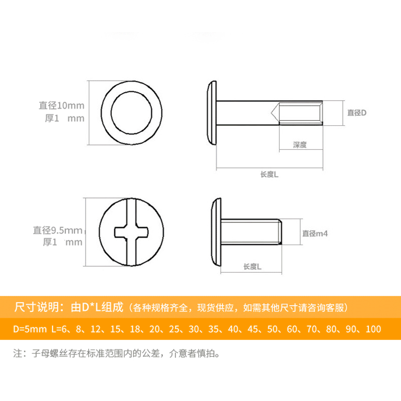 Rivet nails Nails Nickel-plated nickel-primary rivet Ledger Books Butt pair of lock screws primary-secondary nail rivets M5