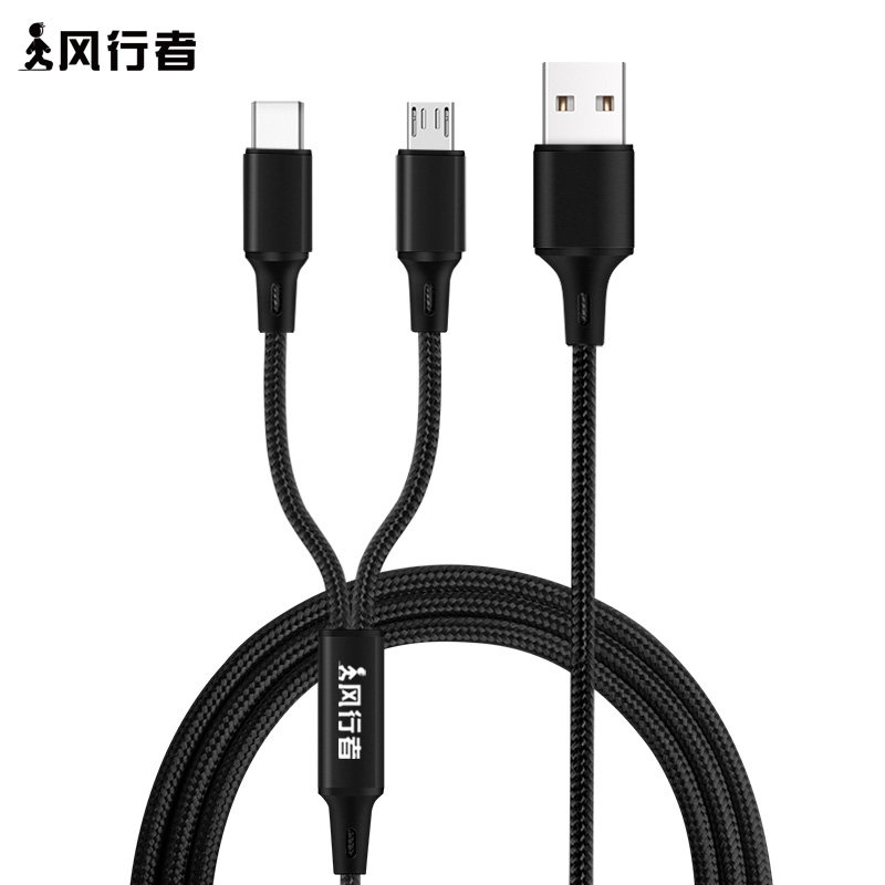 One drag second charge wire machine Type_c Xiaomi vivo mobile phone Huawei OPPO Android two-in-one data line lengthened 2 m super-long three-meter 3A fast-filling suit MATE9 10 Honor V