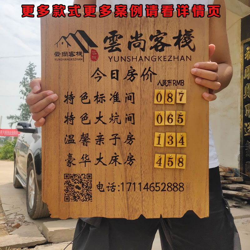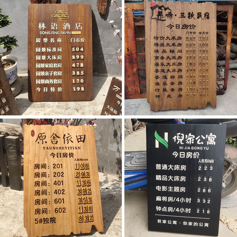 Personality solid wood brand custom salon price list B & B hotel room rate plate replaceable price list can be replaced