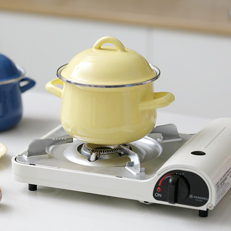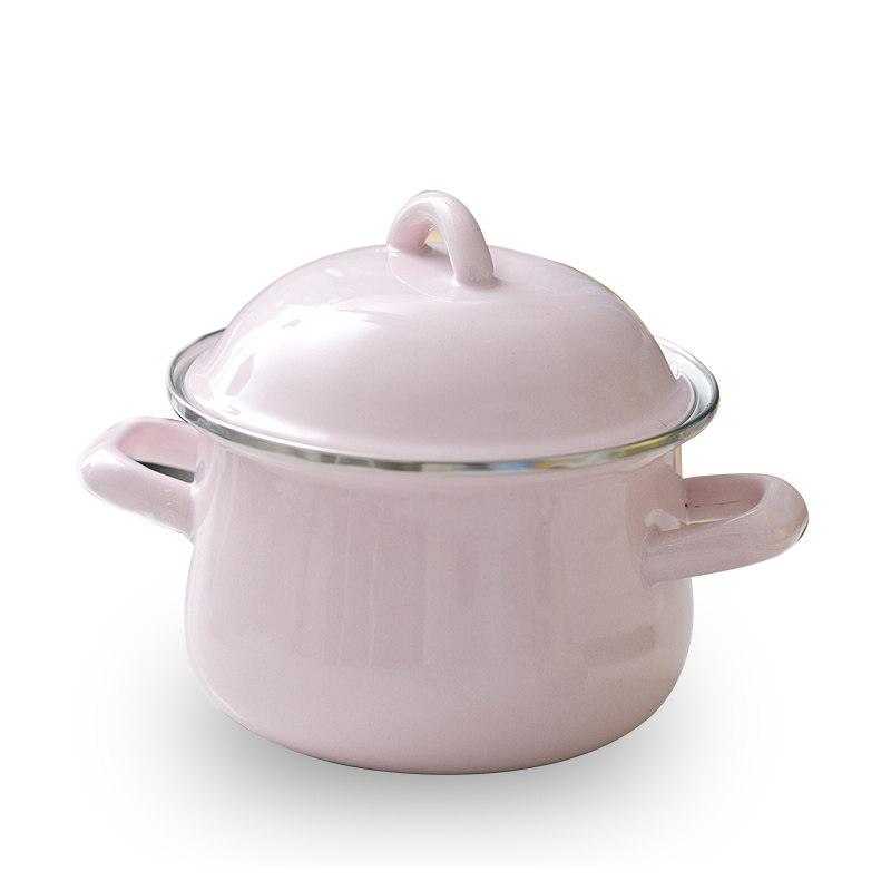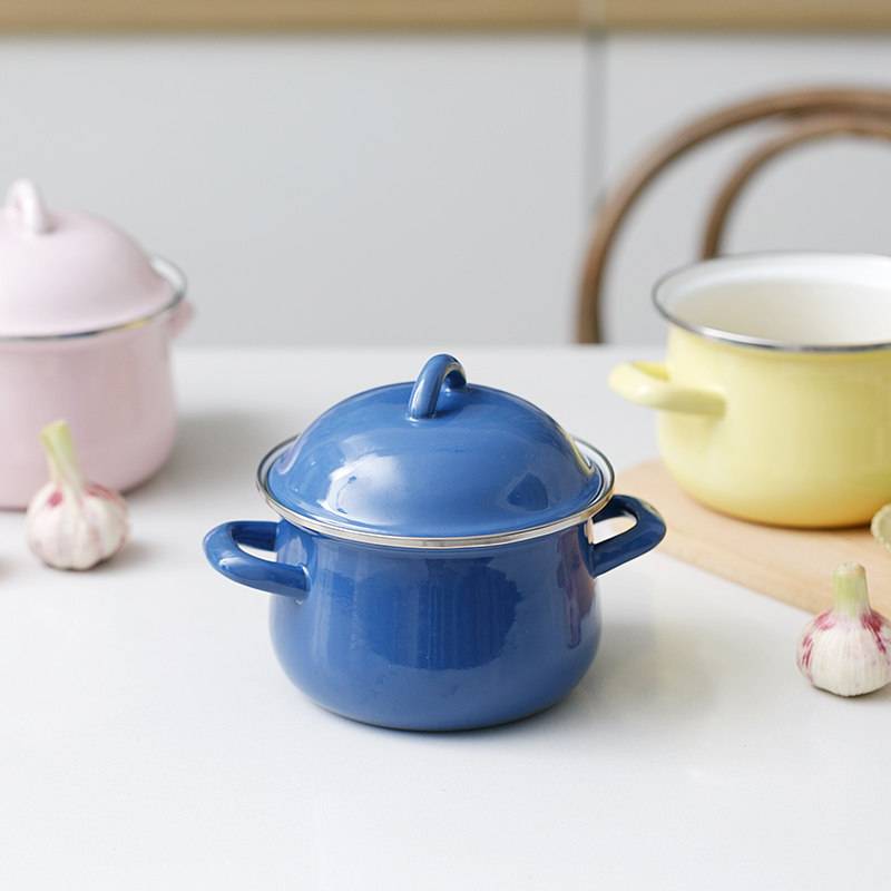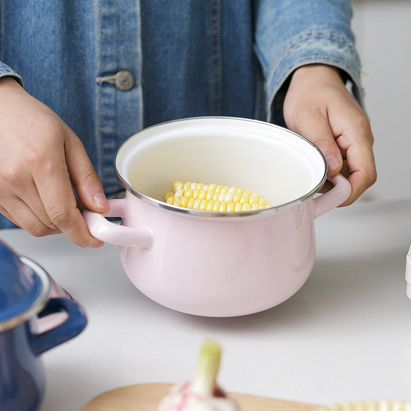 BOBAO enamel 16CM1 5L day style thickened enamel pot soup pan with lid milk pan baby side food pan foam noodle pan