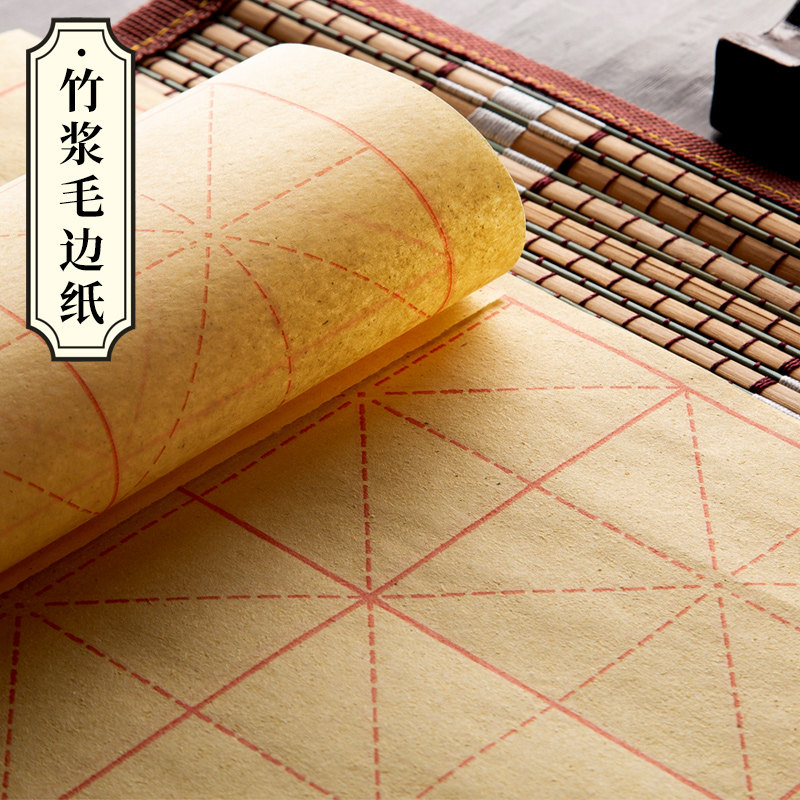 Raw edge paper calligraphy special practice brush word paper rice character grid rice paper beginner practice paper handmade raw paper half-cooked 28 grid thick antique writing paper practice words brush word with paper bamboo pulp