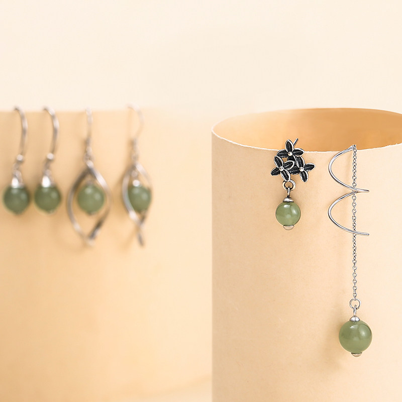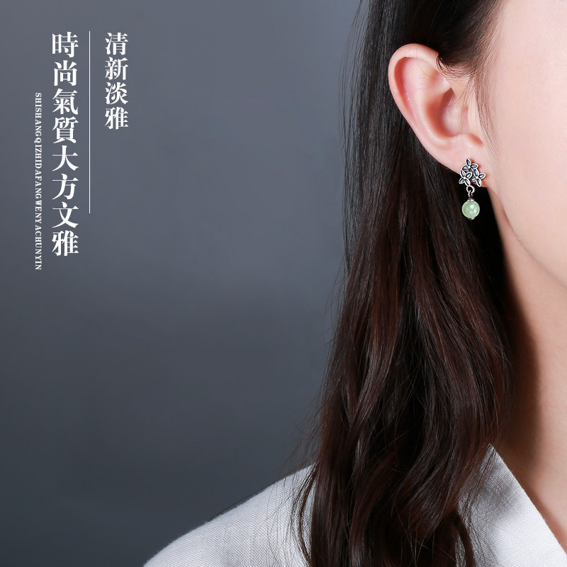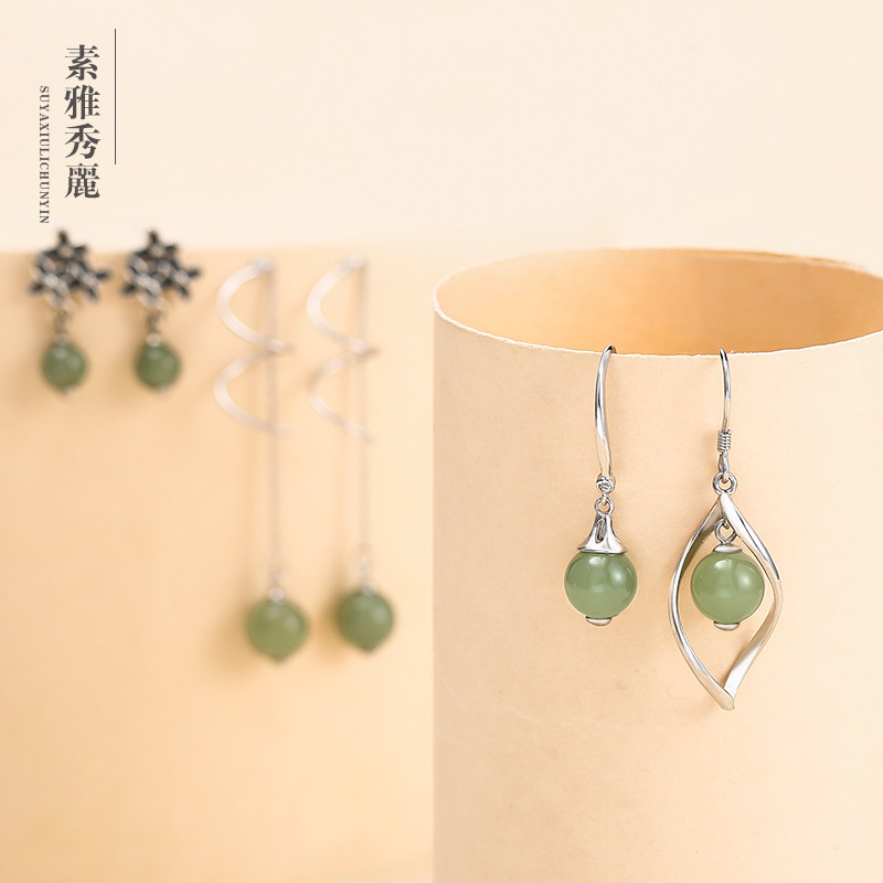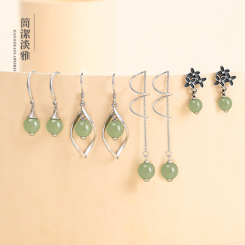 925 sterling silver vintage earrings women natural Hetian jade tassel simple temperament fashion earrings earrings jewelry