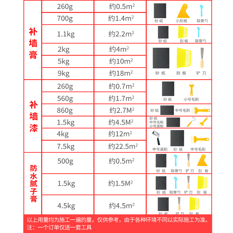 260g fill wall paste 260g fill wall paint] Tools 700g fill wall paste 560g fill wall paint special package limited to 1 1kg fill wall paste 860g fill wall paint special package limited to 2kg