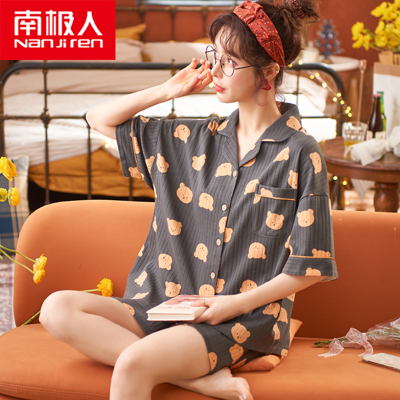 South Pole Man Pure Cotton Pyjamas Lady Summer Thin short sleeves shorts Two-style suit cardiovert cute student's home clothes