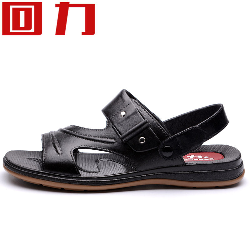 Back Force Sandals Men's Dual-use Soft Bottom Leather Slippers Summer Outer Penetrating Gas Beach Shoes Casual Non-slip Plastic Driving Cool Tug