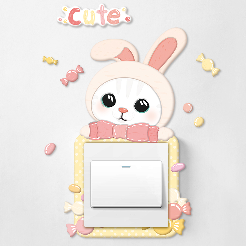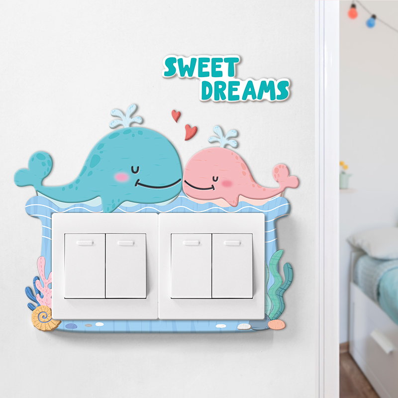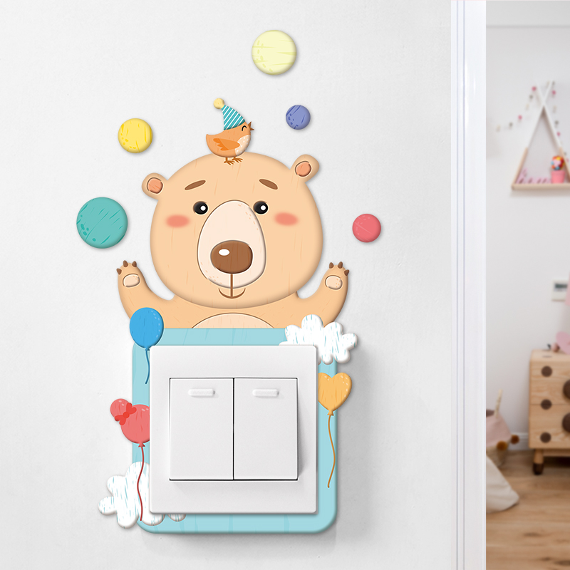 Cartoon Small Moving Things Bedroom Wall Solid Switch Sticking Wall Stickers Socket Decorative stickers Nightlight Light Switch Protective Sleeves