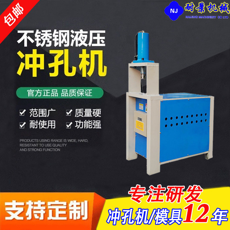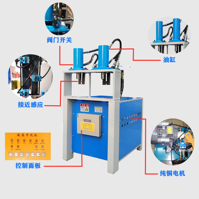 Small stainless steel square tube punching machine electric hydraulic channel steel angle iron cut off material machine multifunction round punching machine