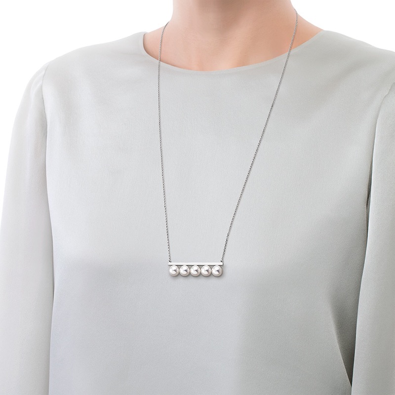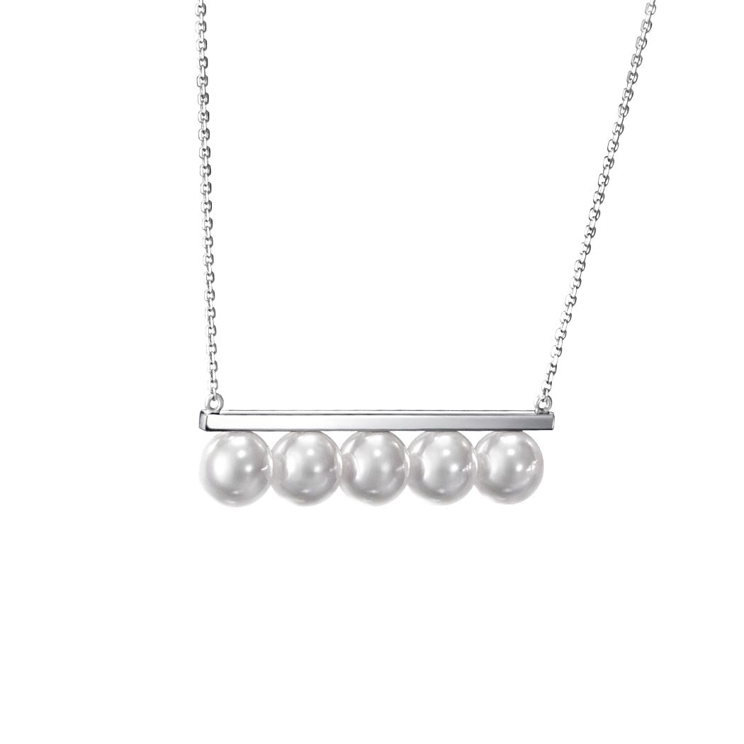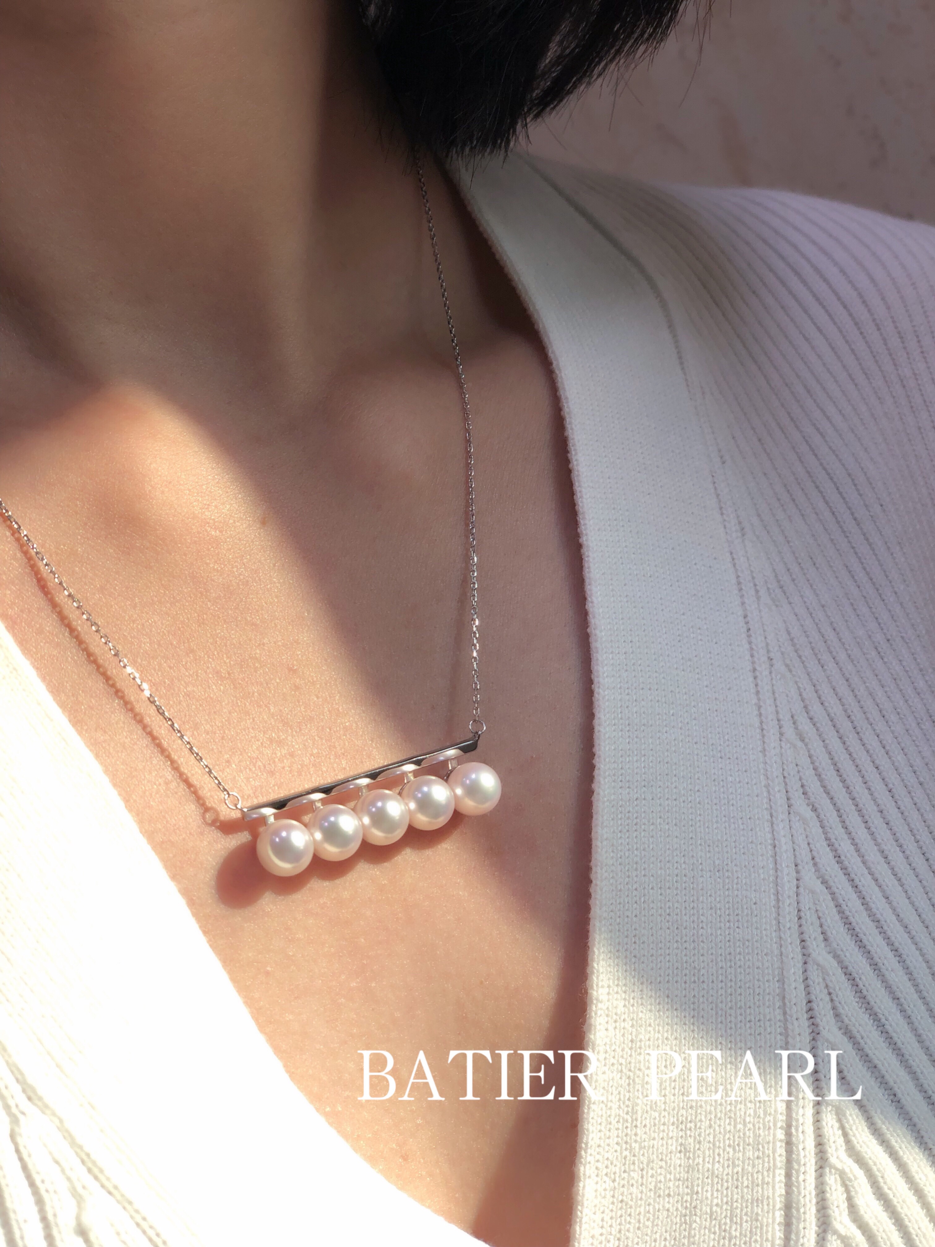 T with the same classic five-bead balance beam Japan akoya sea pearl 925 sterling silver necklace