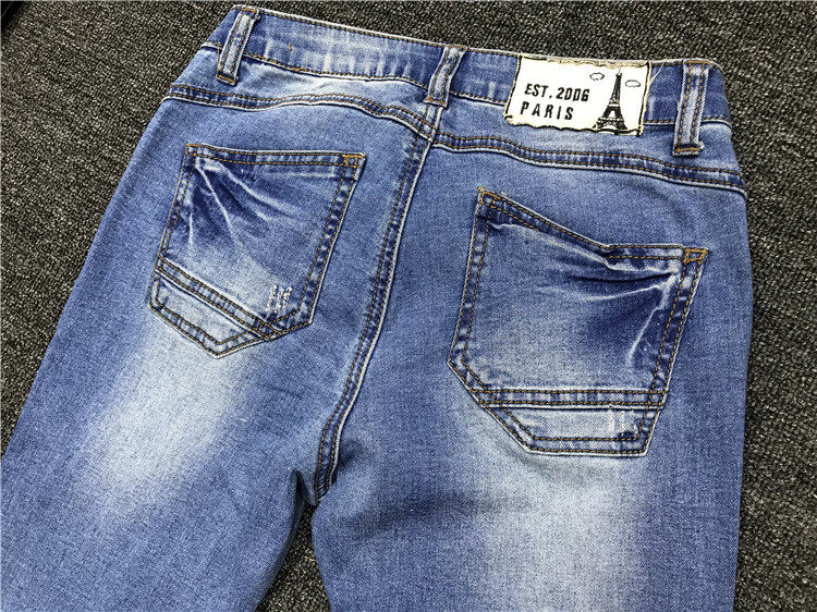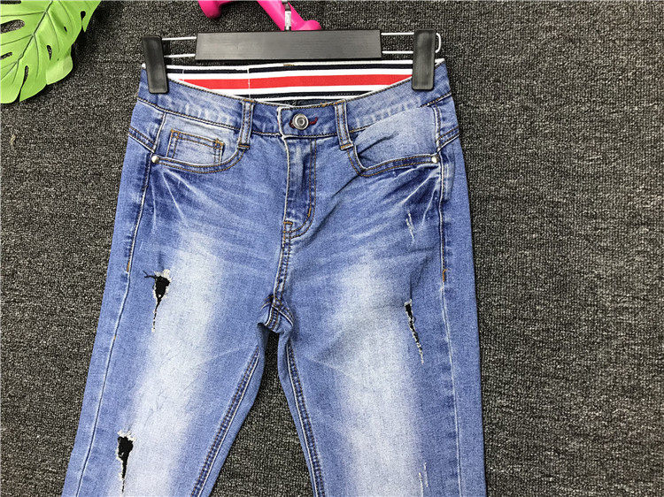Clearance original single women's spring and autumn new ripped hole old elastic Korean version was thin and legged mid-waist jeans 9382