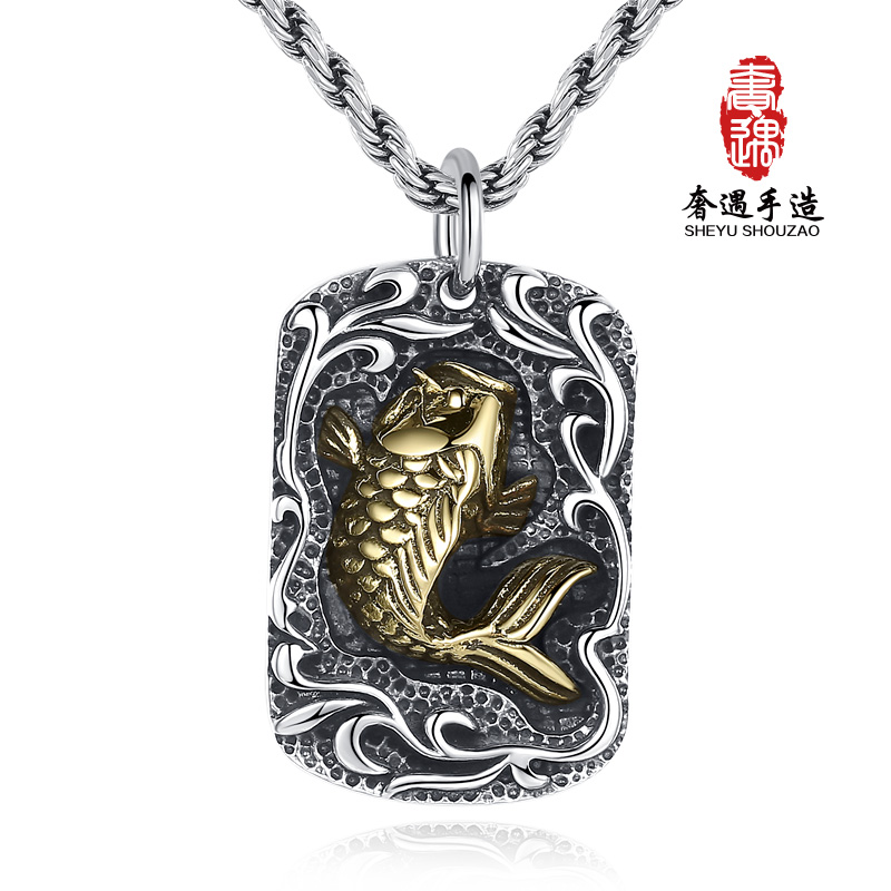 LRER Luxurious Carp Pendant Men Necklace Woman Pure Silver Comeback Ancient Year with Fortune Lovers Ornament Pendant