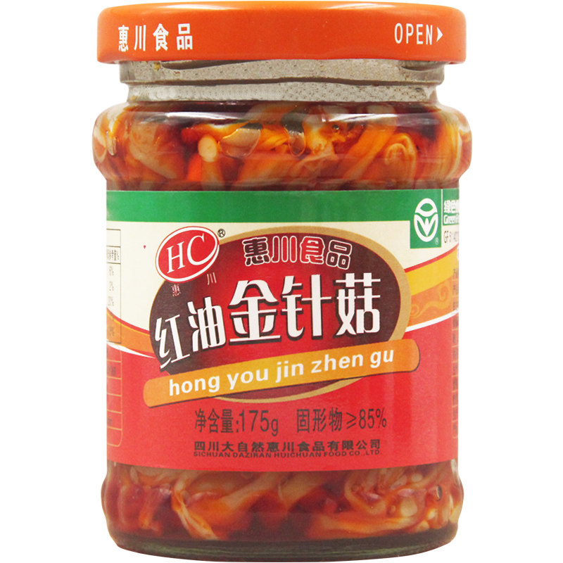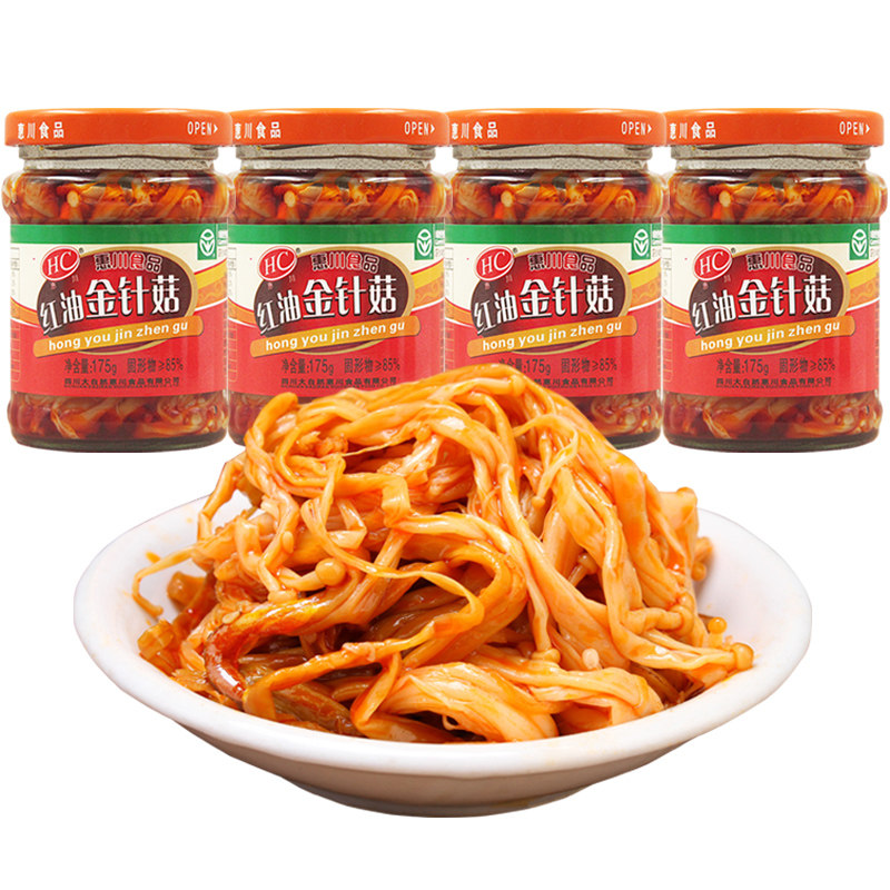 Huichuan Red Oil Gold Needle Mushroom dish canned spicy whole box flavored and spicy cackies 175g*4 bottles