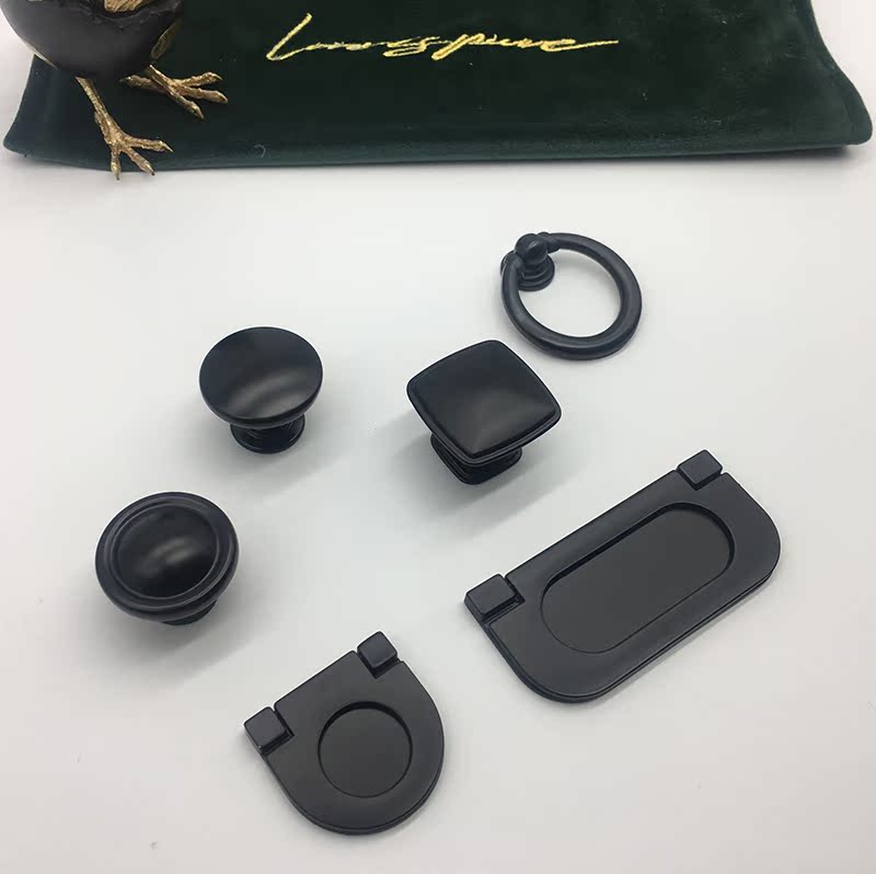 Overall cabinet drawer handle kitchen black cabinet door handle wardrobe American Nordic style modern minimalist single hole handle