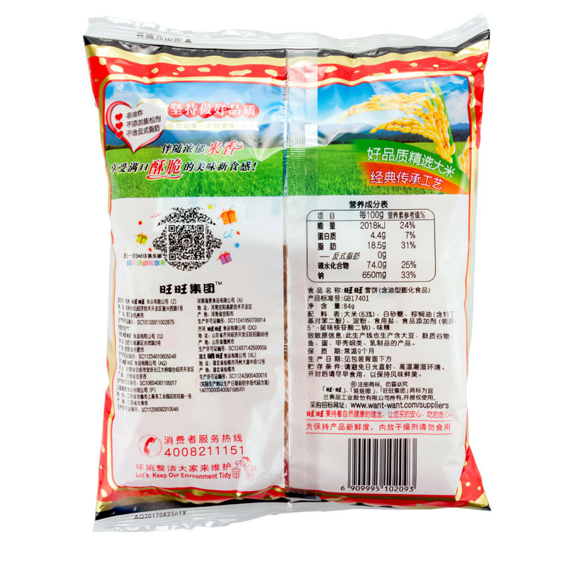 Want Want Snow Cake Senbei Combination Whole Box Batch Affordable Small Package Snacks New Year Purchase 84g*20 Bags