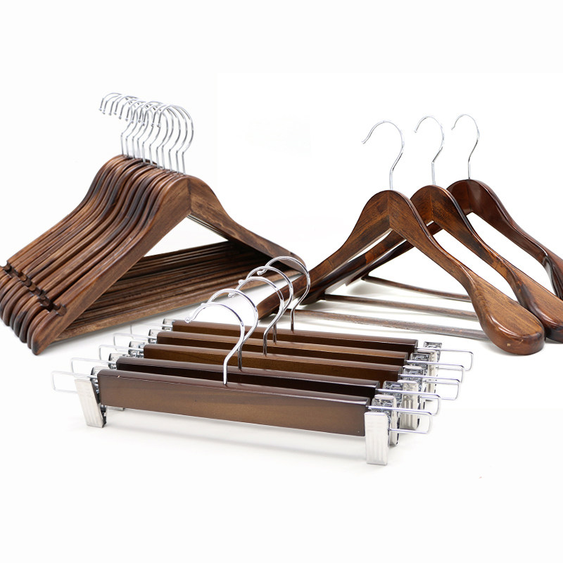 Retro solid wood clothes rack clothes hanger anti-slip wood hanger hotel with wooden clothes hanger clothing shop pants holder pants clip