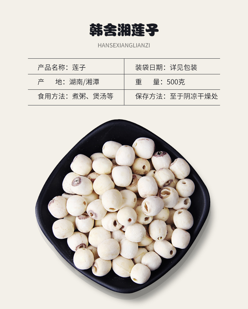 Hanshe lotus seeds dry goods to the core Xianglian unintentional white lotus seeds 500g specialty microdermabrasion Tongxin inch three lotus