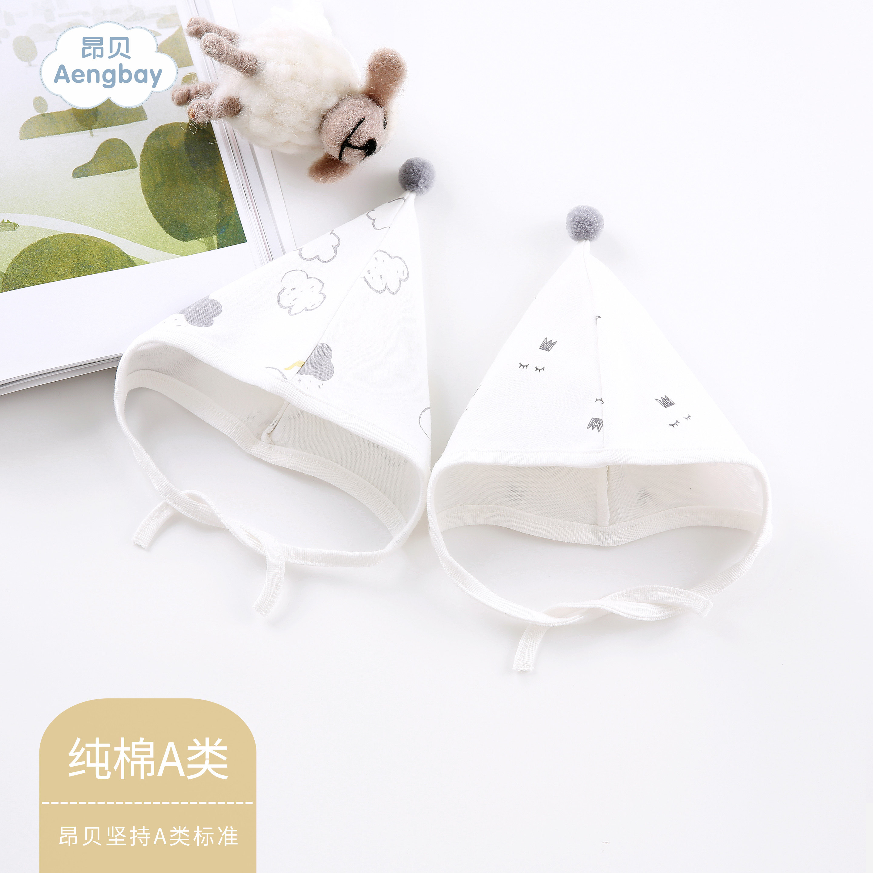Angbei baby cap spring and autumn thin section female cotton newborn hat 0-3 months 6 male baby newborn supplies hat